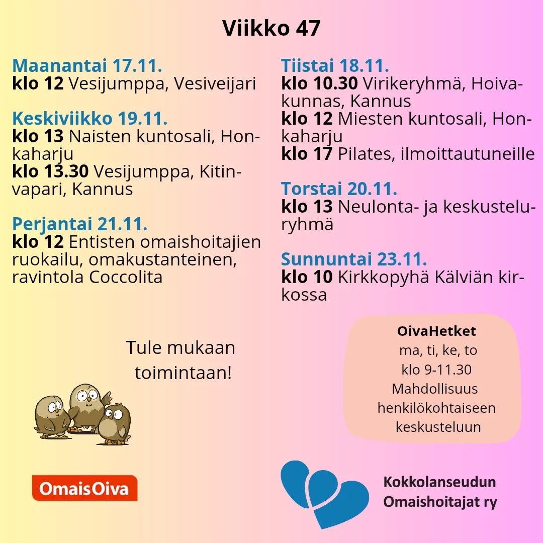 Omaishoitoyhteisön virkistystoimintaa järjestetään mahdollisuuksien mukaan.